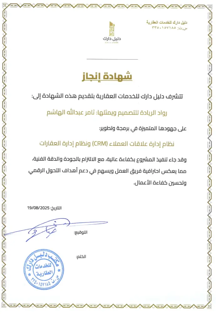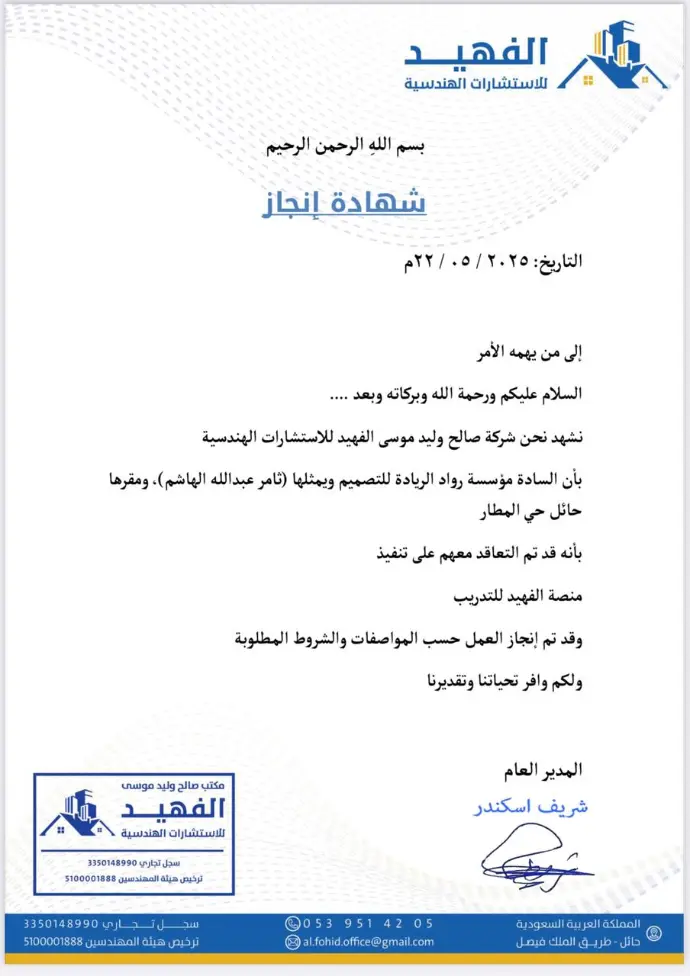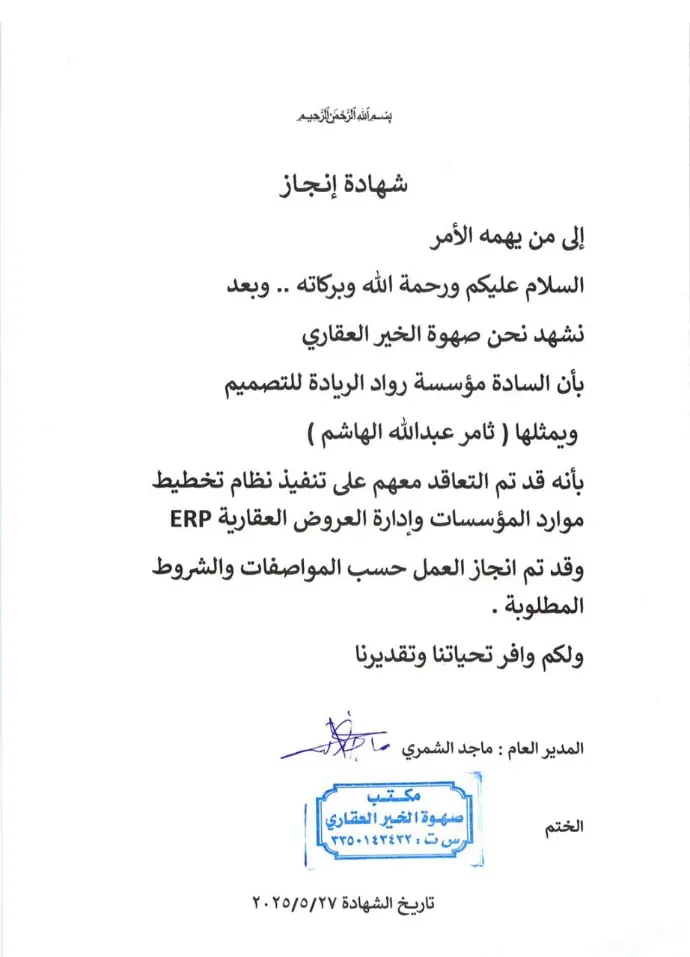نعتز بما حققناه مع شركائنا، وكل شهادة نحملها هي تأكيد على جودة عملنا ورضا عملائنا.